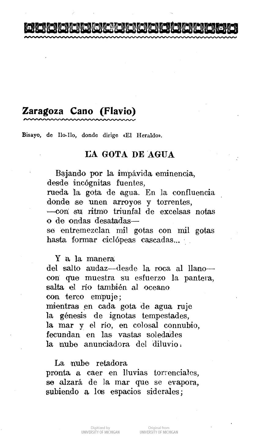 FLAVIO CANO'S POEM "LA GOTA DE AGUA"