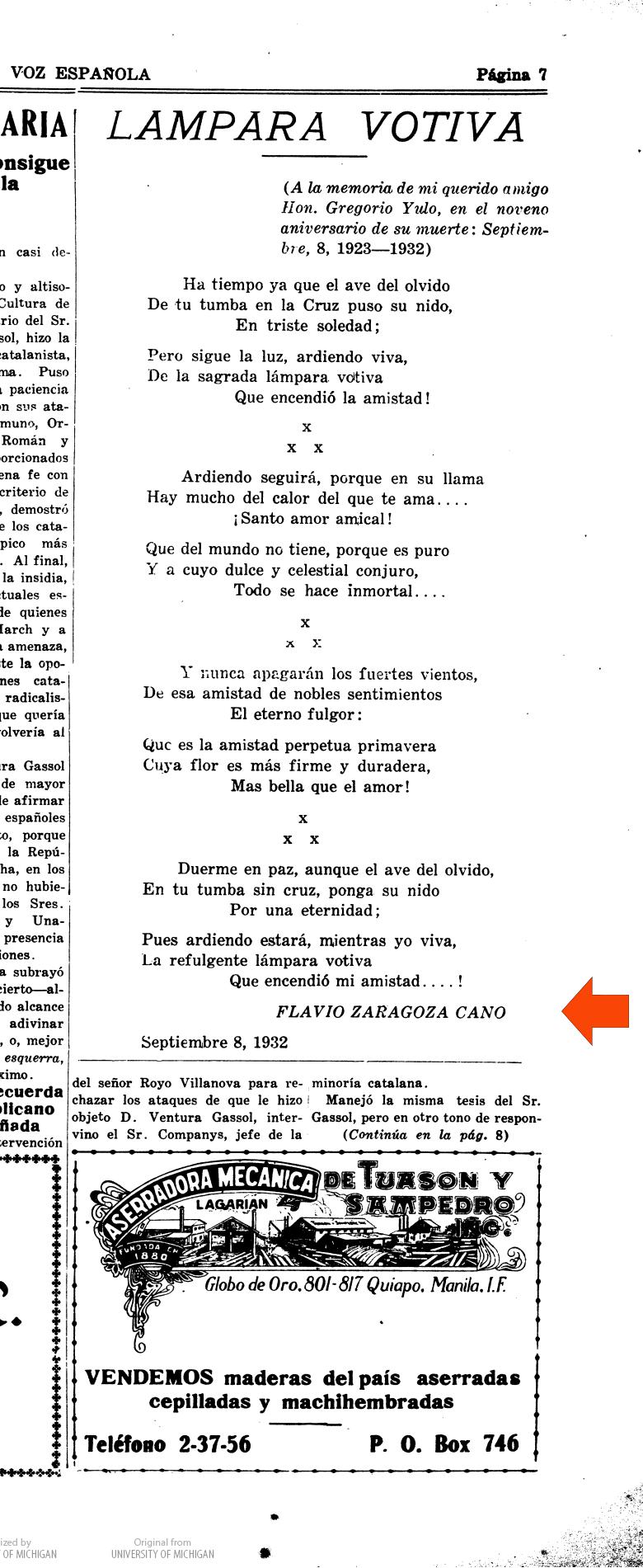 FLAVIO CANO'S POEM "LAMPARA VOTIVA"