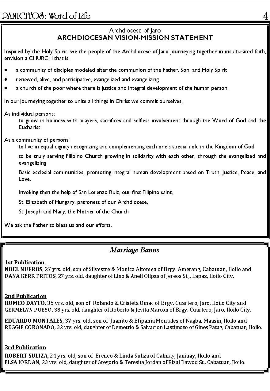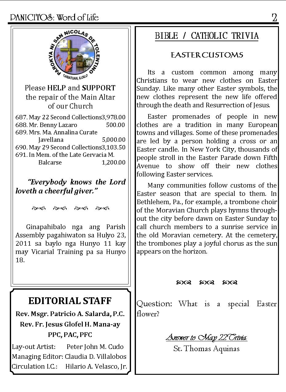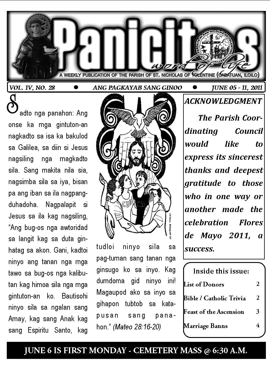 A Weekly Publication of the Parish of San Nicolas de Tolentino, Cabatuan, Iloilo