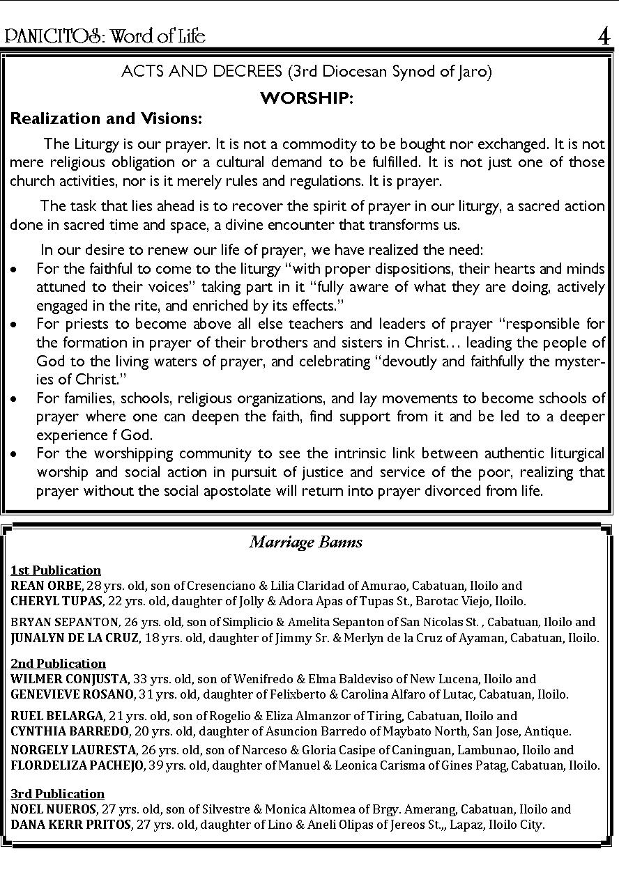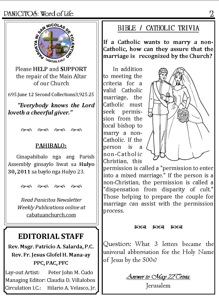 A Weekly Publication of the Parish of San Nicolas de Tolentino, Cabatuan, Iloilo