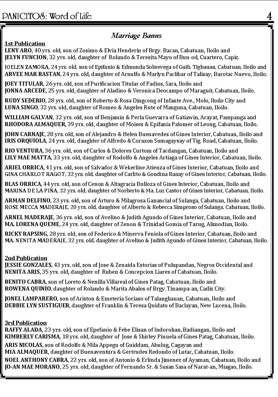 A Weekly Publication of the Parish of San Nicolas de Tolentino, Cabatuan, Iloilo