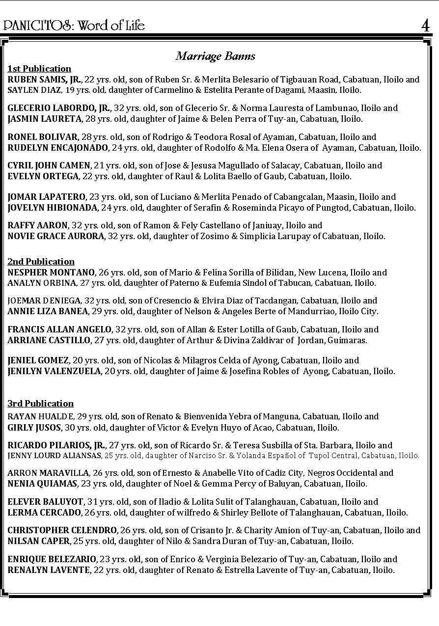A Weekly Publication of the Parish of San Nicolas de Tolentino, Cabatuan, Iloilo