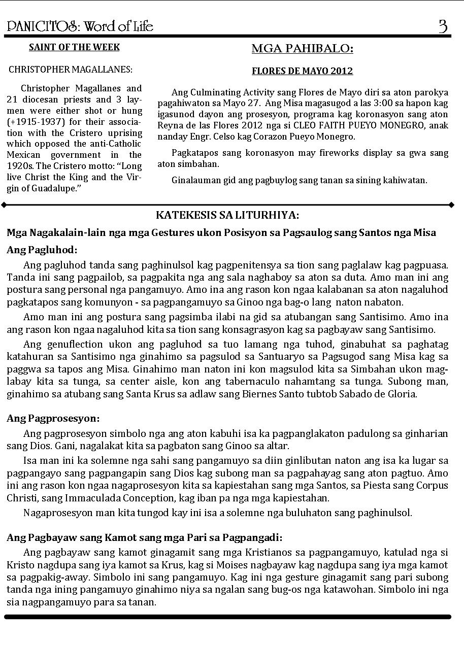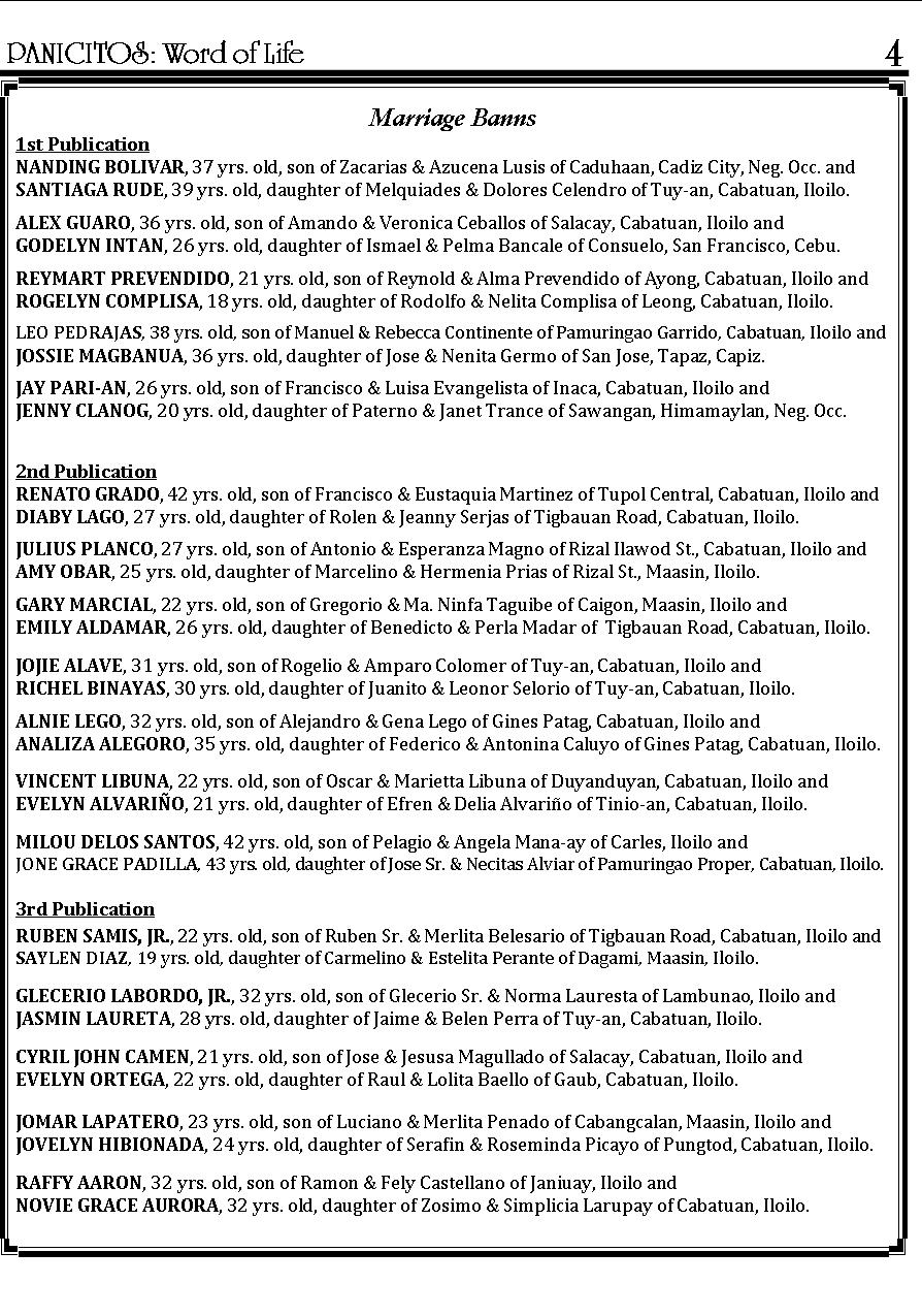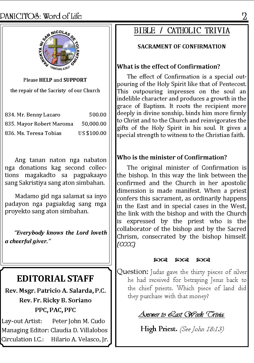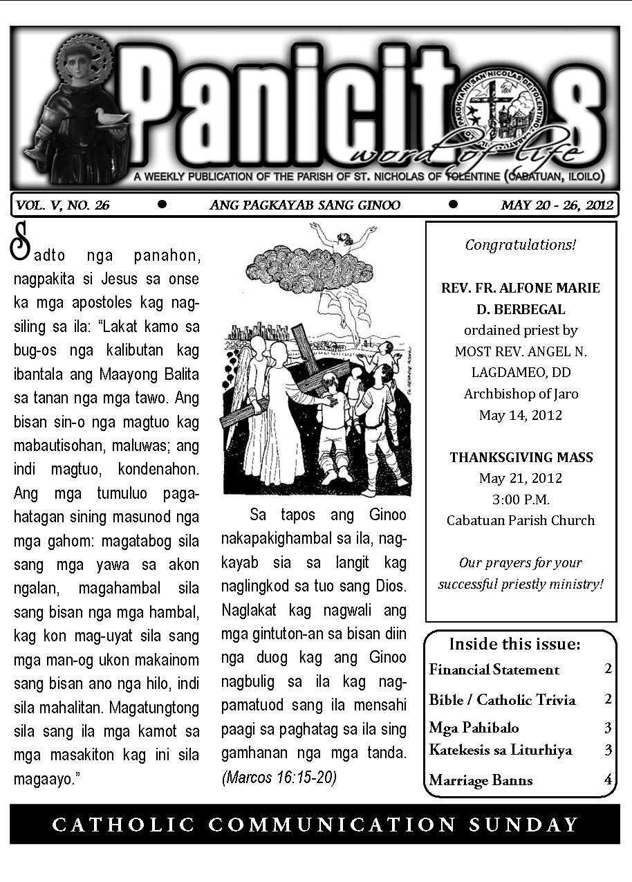 A Weekly Publication of the Parish of San Nicolas de Tolentino, Cabatuan, Iloilo