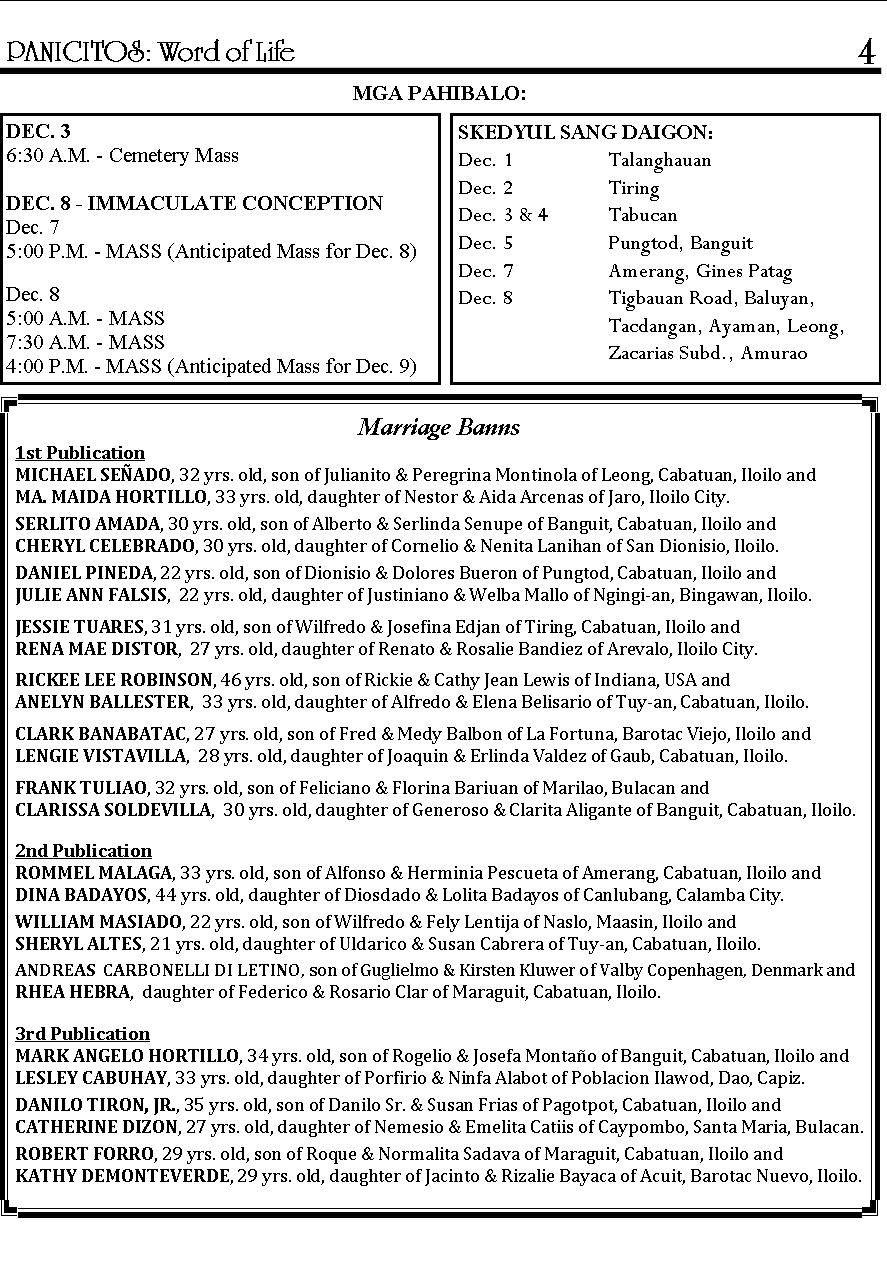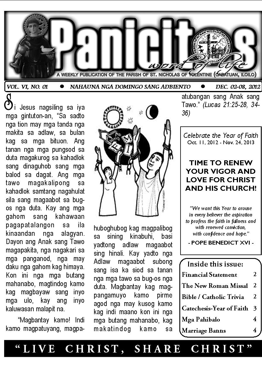A Weekly Publication of the Parish of San Nicolas de Tolentino, Cabatuan, Iloilo