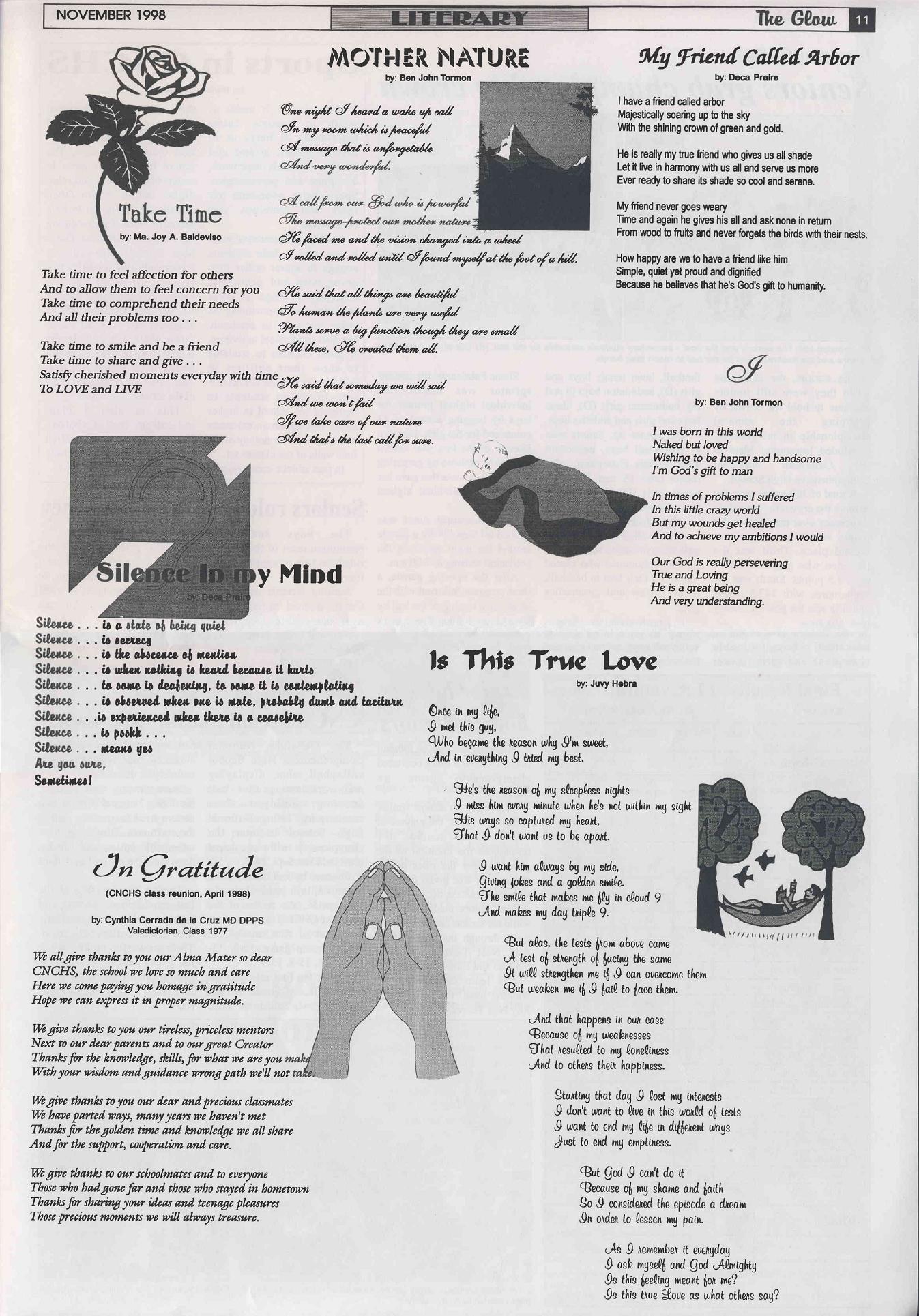 The Glow, July-October 1998. Official Publication of CNCHS - Cabatuan National Comprehensive High School